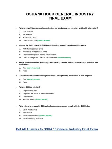 Online PDF Osha 10 Hour Answer Sheet rtf Gutenberg
